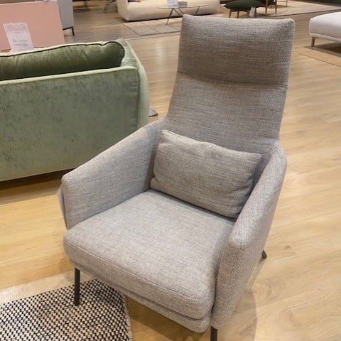 Sitsin upea Disa nojatuoli ja rahi pehmeällä Poppy kankaalla. Tuoli sisältää niskatyynyn, 2 pyöreää tyynyä sekä rahin.