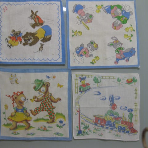 4 kpl vanhoja lasten nenäliinoja