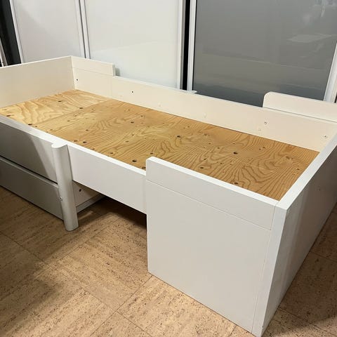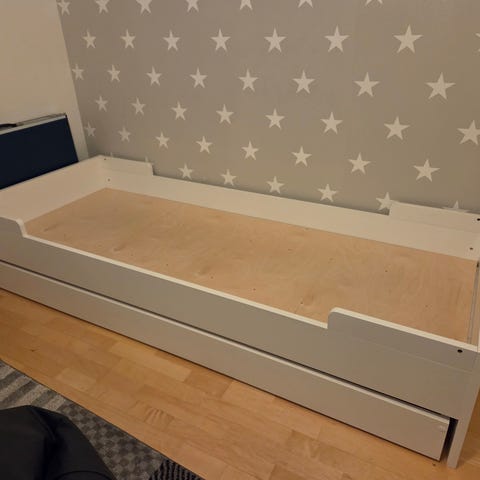 Muurame Jatkettava sänky on muunneltava lasten sänky, joka mahdollistaa pituuden säätämisen lapsen kasvun mukaan. Sänky on valmistettu puumateriaalista ja sen väri on valkoinen. Käytön jälkeä löytyy mutta yleisilme on siisti. Mukaan saa prismasta ostettu patja jossa on aina ollut suoja suojaamassa.