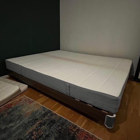 Vuoden vanha Ikean patja. Kiinteä ja pussijousetettu. Koiratalous, mutta koiralla ei ole pääsyä sänkyyn, koska parvisänky. Puhdas, välissä ollut petari ja patjansuojus.