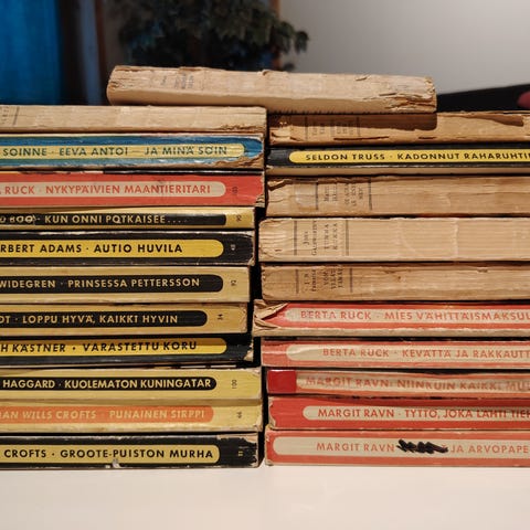 Gustaf-kirjat 1-9 1980-luvulta ja Nalle puh 1980-luvulta.