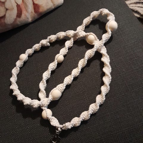 Makramee korvakorut helmillä. Koukut hopeoituja.