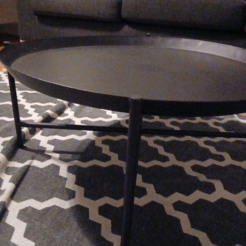 Myydään kiiltävä musta sohvapöytä. Joskus vesilasi kaatunut ja lastulevy hieman turvonnut, näkyy kuvassa, muuten asiallisessa kunnossa.