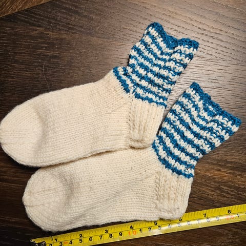 Myydään uudet itseneulotut villasukat, kokoa 29, pituus 18,5cm.