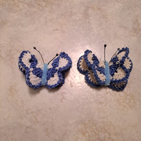 2kpl Uusia virkattuja perhonen/perhos magneetteja.