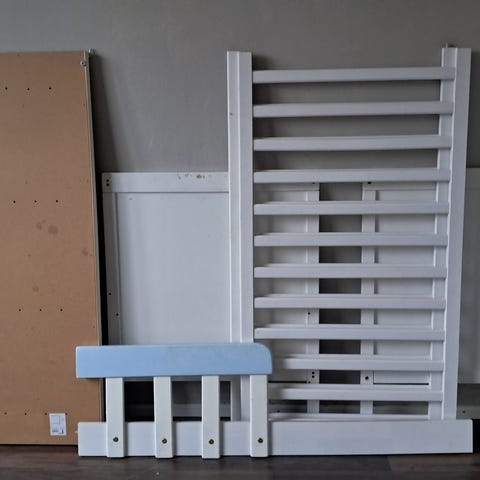 IKEA gonatt pinnasänky, jossa on kolme säilytyslaatikkoa sängyn alla. Laatikot toimivat hyvin. Pohjaa saa nostettua ylös. Mukaan saa halutessa myös patjan. Sänky on tosi tukeva.