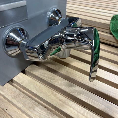 Oras termostaattinen suihkusekoitin kromipinnoitteella. Sekoittimessa on termostaattinen säätö.