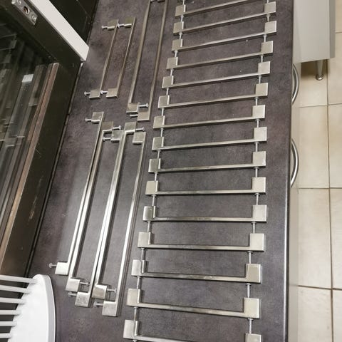 12kpl vetimiä kaapinoviin. Leveys 128mm. Ruuvit mukana.