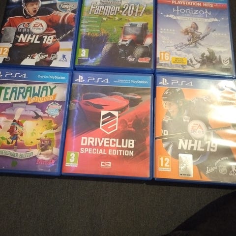 Sony Playstation 4 pelit sisältäen Gran Turismo, Battlefield V, Grand Theft Auto V, Call of Duty Black Ops III ja Red Dead Redemption II. Pelit ovat fyysisiä levyjä ja yhteensopivia Playstation 4 -pelikonsolin kanssa.