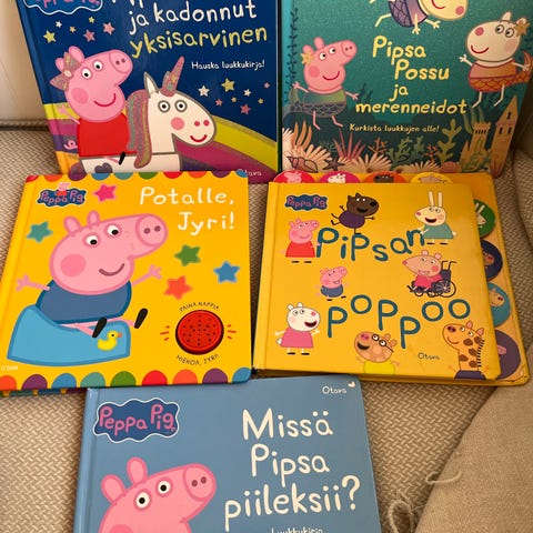 Myydään kaksi Pipsa-kirjaa; Pipsa ja kultaiset saappaat sekä Pipsa ja parhaat synttärikemut.