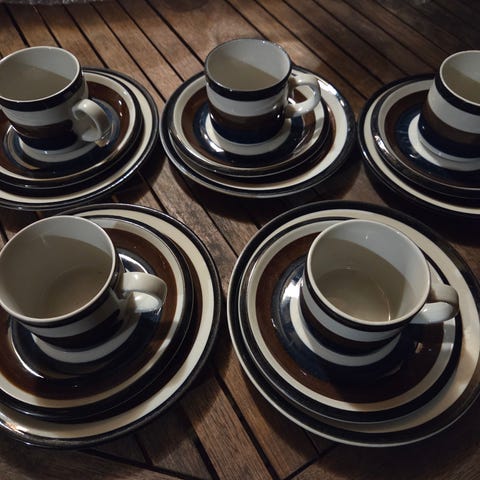 Arabia Kaira astiasto kahvikannu, kupit ja lautaset