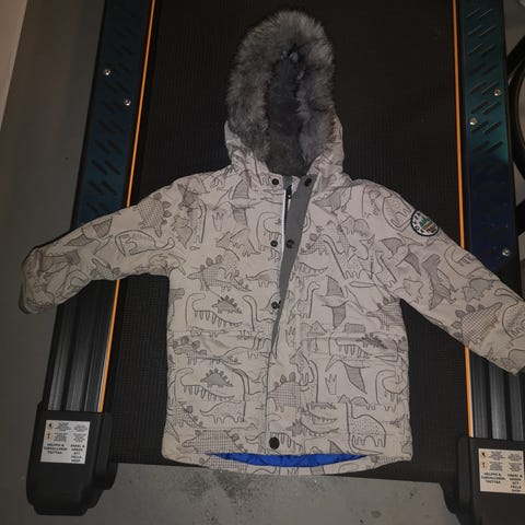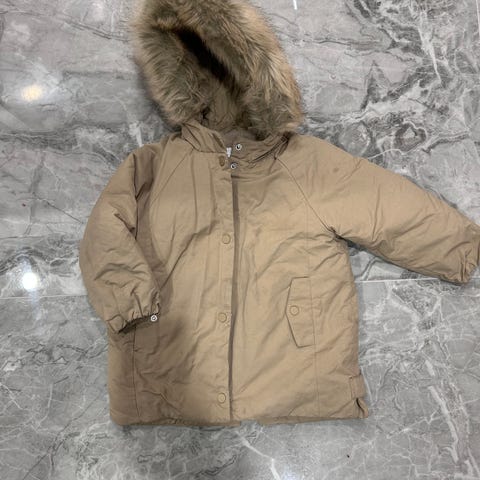 Mangon toppatakki irroitettavalla hupulla, koko 104cm, pientä mitoitusta. Siistissä kunnossa.