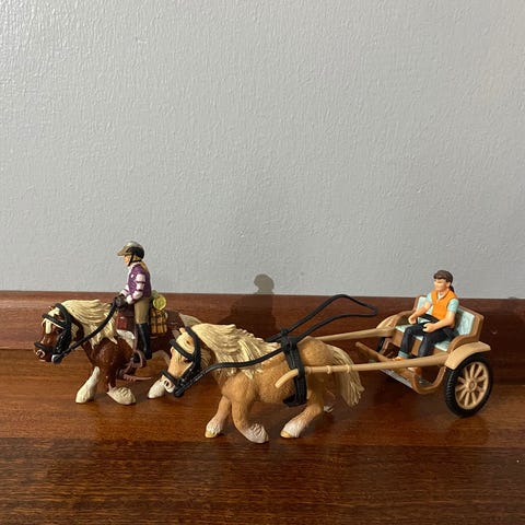 Tyttö myy Schleichinsä seuraavalle keräilijälle/leikkijälle. Myynnissä/tulossa myyntiin mm. Schleich poniagility setti, auto ja traileri, hevonen, mukana mies, koira ja ruokaa,, retkisetti, jossa 2 ponia, ratsastajat ja varusteet, 2 hevosta sisältäen koiran, ratsastajan ja varusteita, kahvila sisältäen hevosen, 2 hahmoa, varusteita sekä paljon irtotavaraa, hevonen sisältäen ratsastajan ja varusteet, hevonen sisältäen 2 koiraa ja varusteet, laidunsetti sisältäen hevosen, 2 ponia, varsan ja aidat, 2 islanninhevosta, hevonen, sisältäen 2 varsaa ja puput, hevonen, hevonen sisältäen varsan ja ponin, 3 koiraa, 3 ponia, hevonen, hevonen, sisältäen oravan, puput ja omenat, kotieläimiä, talli sisältäen 3 hevosta, 2 hahmoa, 3 koiraa sekä muita tarvikkeita ja ruokia, pesupaikka sisältäen hevosen, hahmon ja muut tarvikkeet, palkintosetti sisältäen 3 hevosta, yhden hahmon, 2 kukkalaatikkoa, palkinnot ja suitset, kenttä ja esteet sisältäen aidat, portin, esteet, 2 hevosta, ponin, 2 ratsastajaa ja varusteet, setti, jossa esteitä, numerokyltit, 2 hevosta, ponin, 2 ratsastajaa ja varusteet, laidunsetti, jossa 2 hevosta, 3 ponia, aidat, 2 koiraa ja ruoat, talli sisältäen 3 hevosta, varsan, hahmon, 2 koiraa sekä muuta varusteet, tarvikkeet ja ruoat, shetlanninponi sisältäen kärryt ja ajajan, pupula, 3 varsaa ja 2 ponia, vuonohevosperhe sisältäen 2 hevosta, varsan ja aidat (harvinaisuus, ei valmisteta enää!), vuonohevonen ja varsa (harvinaisuus, ei valmisteta enää!),