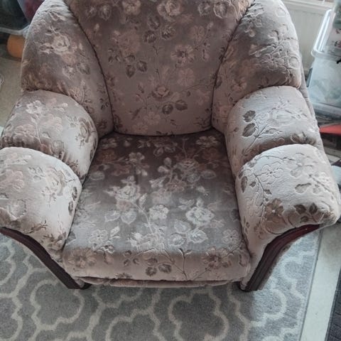 Kaksi tukevaa nojatuolia 70-luvulta, erinomaiset istua. Ehjä alkuperäinen verhoilu, pari koristenappia puuttuu. Puuosat koivua, käsinojissa pientä kulumaa. Säilytetty sisätiloissa, ei lemmikkejä. Nouto Vähikkälästä.