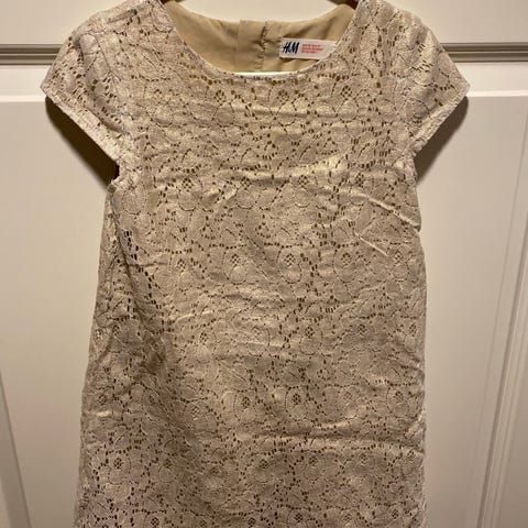 Lasten kultainen juhlamekko. Takana vetoketju ja edessä paljetteja. Koko 116. Ostettu Seppälästä.