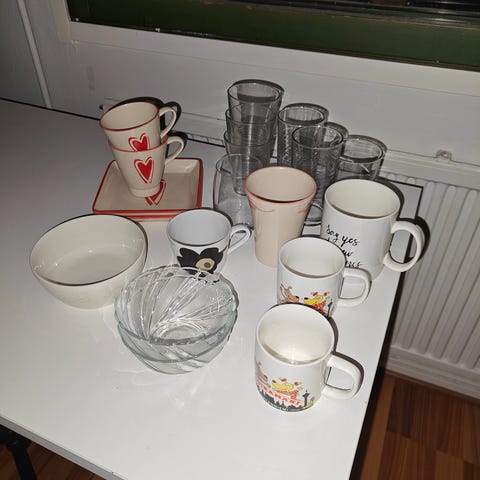 Annetaan sekalaista tavaraa, astioita, verhoja, päiväpeitto yms.