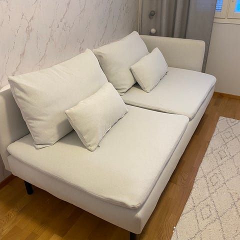 Ehjä ikean suosittu söderhamn sohva vaalean harmaassa värissä, jota ei enää valmisteta.