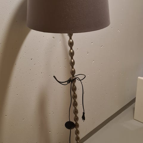 Painavajalkainen, metallinen, säädettävä, max korkeus 190cm, kuupan ja jalan halkaisija 36cm. Kuuppa sisältä valkoinen. Katkaisija lattiajohdossa. Kuin uusi. Karjalohjalla.