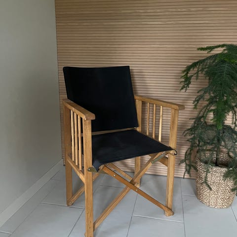Hauska, vanha ohjaajantuoli. Maali hilseillyt, mutta ei ole haitannut käyttöä. Kangas vaatii puhdistusta. Muuten toimiva tuoli.