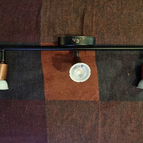 Spotti-valaisin. Kuvut huurrelasia ja käänneltävissä. Valaisimen pituus 52cm.