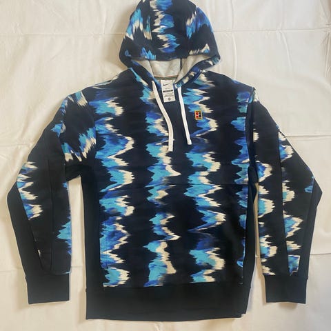 USA:sta tuotu Niken huppari, s-koko, hiukan erilainen kuosi mitä ei Suomessa taida olla ollut myynnissä. Muuten hyvässä kunnossa, kuvat ja kaikki, mutta selkään tullut pikku vekki korjattu taannoin (vika kuva).
