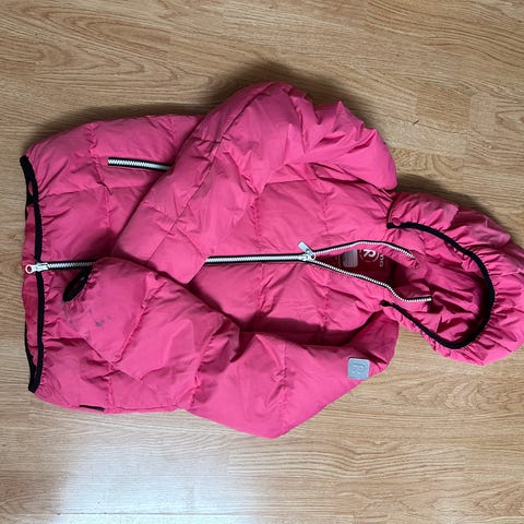 Reima lasten talvitakki, koko 146, väri vihreä. Täyte 60% untuva, 40% höyhen. Irroitettavat hihat ja huppu. Monenlaista käytön jälkeä, mm toisessa hihassa paikattuja reikiä, muuallakin pieniä naarmuja ja jälkiä, kangas edestä ja hihansuista tummunut. Nouto Espoo Kalajärvi (tai Leppävaara arkisin klo 11-12), postitus tai toridiili.
