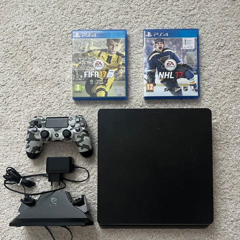 hyväkuntoinen PS4 -konsoli täydellisenä settinä.