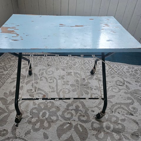 Vintage pöytä/jalusta rullilla