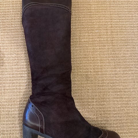 Aito mokkaiset vihreät saapikkaat kokoa 38. Pitkävartiset, saa myös ylipolven saapikkaiksi. Siistikuntoiset, mutta korkolaput täytyy vaihtaa.