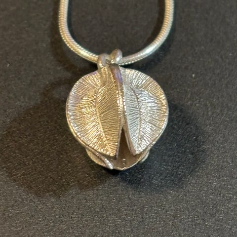 Kalevalan hopeinen Lumikukka kaulakoru. Ketjun pituus 45cm, riipuksen koko 12 mm.