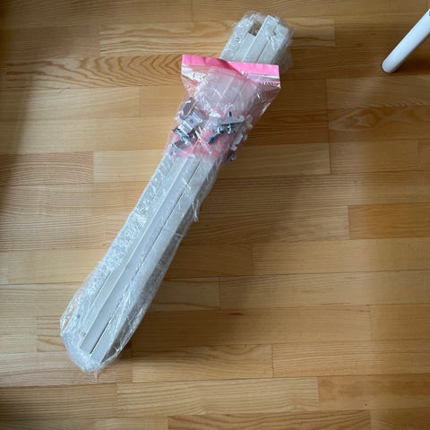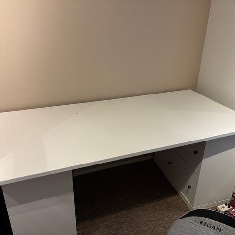 Annetaan Ikean pöytälevy 150 x 75. Muutamassa reunassa isompia ja pienempiä painaumia (mikrofonitelineestä, ks. kuvat). Muuten siisti.