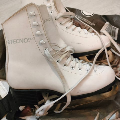Valkoiset nuorella olleet luistimet, koko 37. Siistikuntoiset ja käyttökelpoiset.
