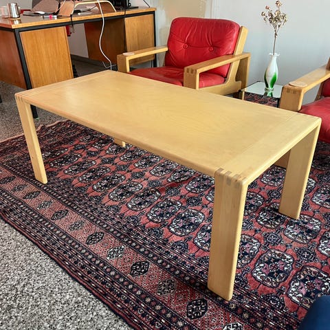 Esko Pajamiehen Askolle suunnittelema Bonanza-sohvapöytä. Tämä on ollut saman perheen omistuksessa 80-luvulta lähtien. Pöytää varten on teetetty lasilevy, jonka saa halutessaan mukaan. Pientä iän tuomaa kulumaa lukuun ottamatta edelleen hyväkuntoinen ja tyylikäs klassikko.
