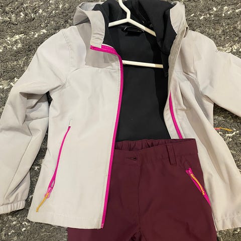 Vaatepaketti ulkoiluun: laskettelutakki 140, kengät 35, Svala-paita jne