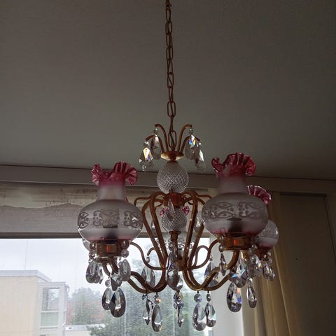 Melkein uusi kristallinen kattovalaisin, halkaisija 38 cm, helppo asentaa kattoon, sisältää 5 polttimot ja pistokkeen mukaan. EI Alennusta,postikulut ostajalle