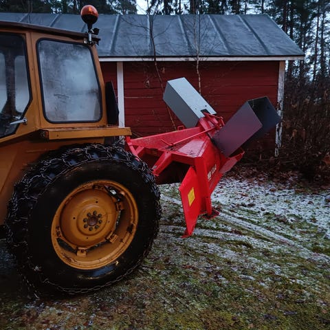 Nivelakselissa vapaakytkin. Lumityöt pihassa ja tiellä.