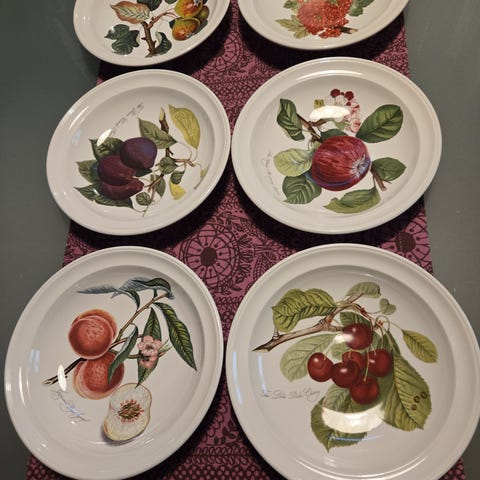 Portmeiron Pomona Posliini lautaset "Hoary Apple Fruit" Valmistettu Englannissa.