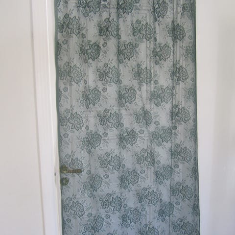 Myydään valkoiset pitsiverhot, leveys 320cm x korkeus 115cm.