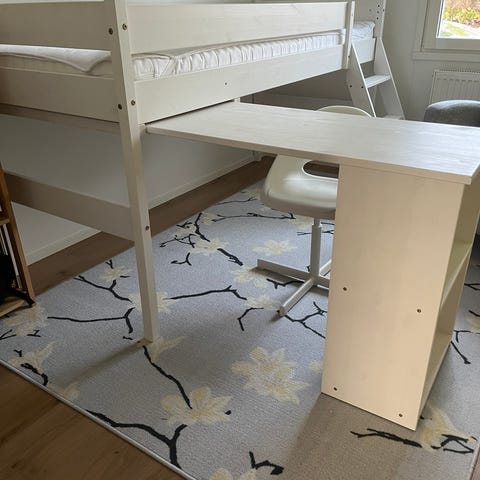 Massiivimännystä valmistettu parvisänky pöytätasolla. Pöytätason voi halutessaan irrottaa. Tikkaat voi sijoitella vapaasti haluamaansa kohtaan sänkyä. Jykevää tekoa, kantavuus 100+kg eli kestää eikä tarvitse kiinnittää seinään.