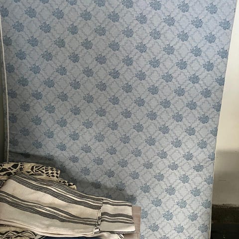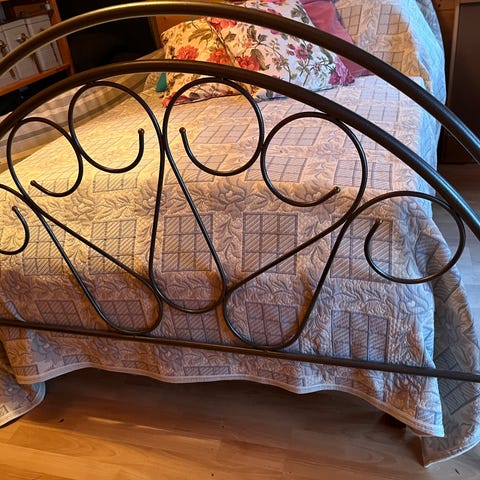 Annetaan kankainen sängynpääty, toisessa kuvassa kiinnityksestä kuva.
