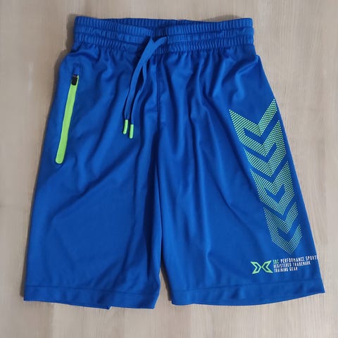POMPdeLUX lasten shortsit, koko 134, sininen väri. Valmistettu puuvillasta. Etupuolen kulumat/kivipesu näkyy kuvassa.
