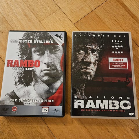 Rambo Trilogy DVD-laatikkosetti, jossa on 6 DVD-levyä. Elokuvat pääosassa Sylvester Stallone. DVD-sarja sisältää kaikki kolme Rambo-elokuvaa.