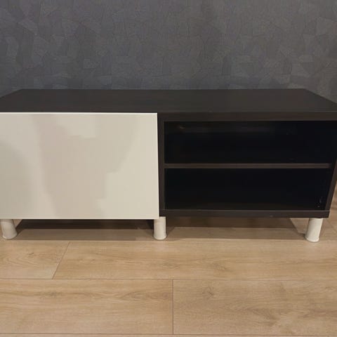 Myyn valkoisen TV-tason, jota on käytetty television alla.