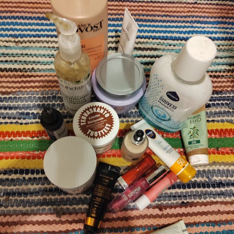 Molempia vain kokeiltu, mutta jääneet käyttämättä. Olleet avattuina alle 12 kk ja molemmissa tuotteissa tuoksu yhä alkuperäistä vastaava. Säilytetty huoneenlämmössä.