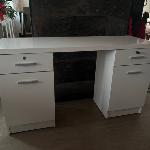 Valkea, asiallinen. Virheet, pienet rikamat pöytälevyn takaosassa, näkyy kuvissa