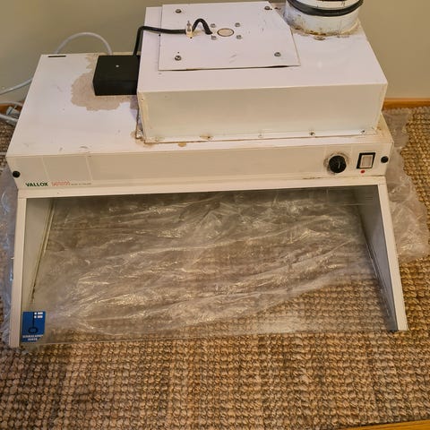 Hormiin liitettävä toimiva liesituuletin annetaan pois remontin tieltä. Valo ja portaaton imun säätö.