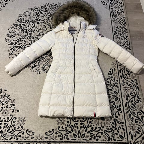 Myydään musta hyväkuntoinen naisten Tommy Hilfigerin untuvatakki kokoa M.