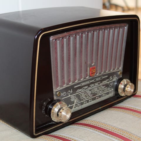 Myydään käsittääkseni Suomessa Pikku-Matti nimellä tunnettu vuoden 1941 itävaltalainen putkiradio Minerva Minerphon 400. Laite on 24cm leveä ja kokoisekseen painava, sillä sen sisällä on tekniikka ja myös putket näkyvät takaosan aukoista olevan sisällä paikoilllaan. Ikäisekseen ulkoisesti siisti laite, varsinkin edestä jopa harvinaisen hyvä. Laitteeseen testattiin tulevan virta ja asteikkomittari liikkuu nupista, muita elonmerkkejä ei ollut. Koska kyseessä on yli 80 vuotta vanha laite on varmuuden vuoksi virtapistoke irroitettu ruuveillaan johdosta, ja se toimitetaan radion mukana osineen pussissa. Myydään siinä kunnossa kuin on ilman valitusoikeutta vaikka koriste / somiste / rekvisiitta käyttöön. stereo vahvistin stereot viritinvahvistin viritin-vahvistin putki radio retro vintage retro koriste 40-luvun vanha 1940-luku antiikki ruskea bakeliitti pakeliitti antiikkiradio ruskea pikku matti