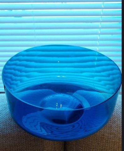 Iittala, Timo Sarpanevan liila pantareunakulho. Ehjä ja hyväkuntoinen, tavanomaista iän tuomaa käytön jälkeä. Pohjassa signeeraus Timo Sarpaneva Iittala -57. Korkeus 12,5 cm, leveimmillään 17 cm. Nouto Tapiolasta tai kulkeutuu Töölöön.