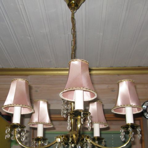 2 kpl roikkuvia ikkunavalaisimia/ verhovalaisimia, Johdon pituus n 110mm. Varjostimen halkaisija 80 mm. Messinki ja kristalli. Nämä eivät ole olleet koskaan käytössä, saatu lahjana yli 10 vuotta sitten.